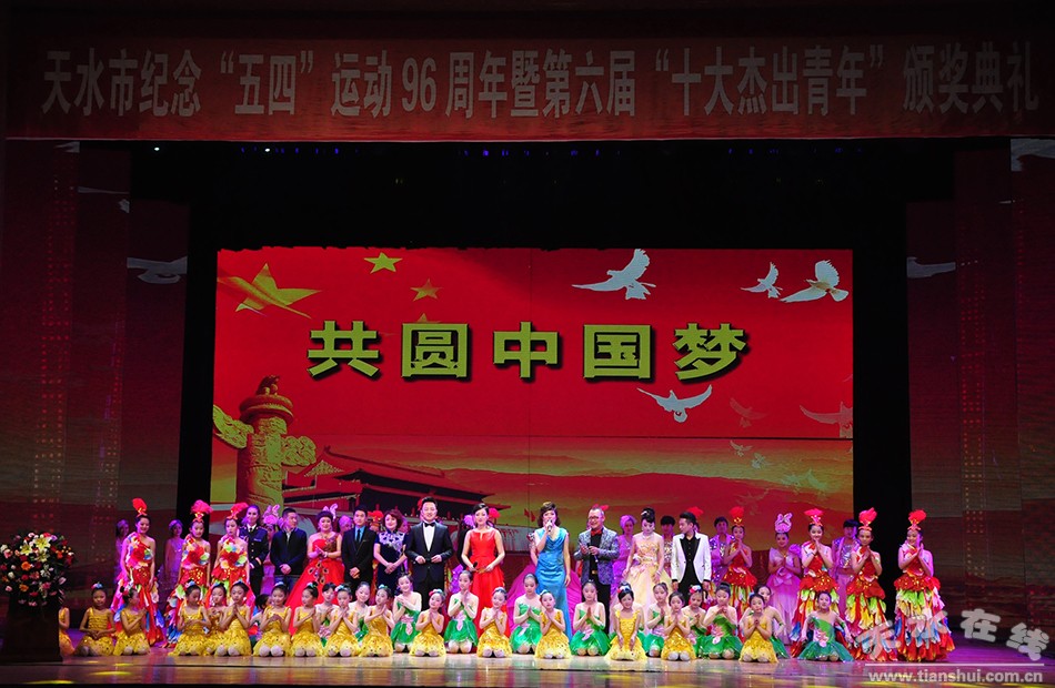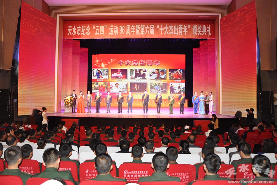 4月27日下午,天水市纪念“五四”运动96周年暨第六届“十大杰出青年”、“十大优秀青年”、“十大最美青工”颁奖典礼在秦州剧院隆重举行。马宏斌、邓福强等“十大杰出青年”,王劲、王平义等“十大优秀青年”,张浩亮、倪文博等“十大最美青工”,共30名来自天水市两区五县各条战线上的优秀杰出青年成为全市广大青年心中的焦点人物。天水日报社记者杨景荣获十大杰出青年荣誉称号。