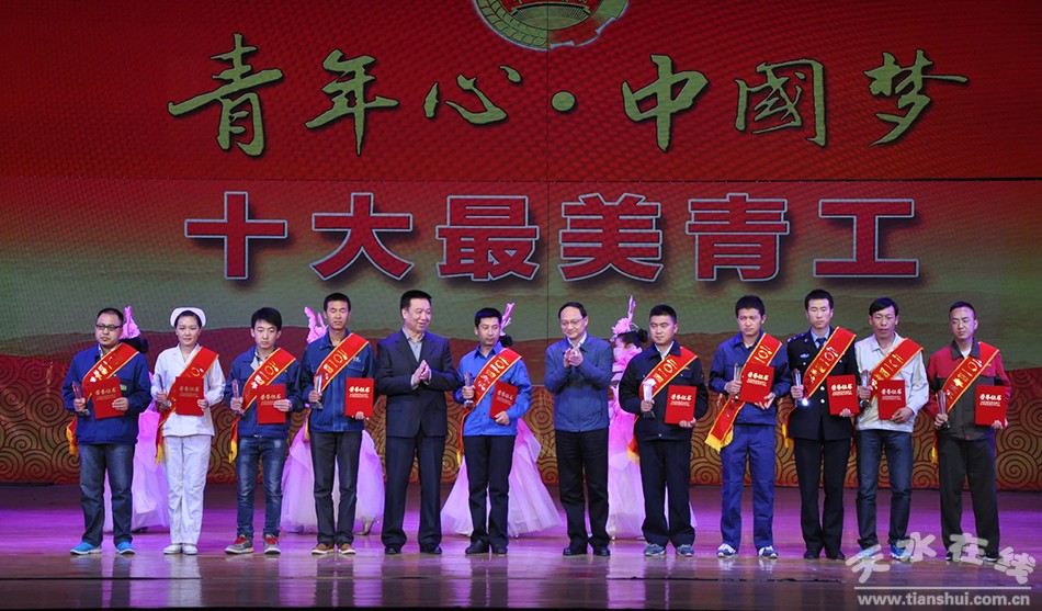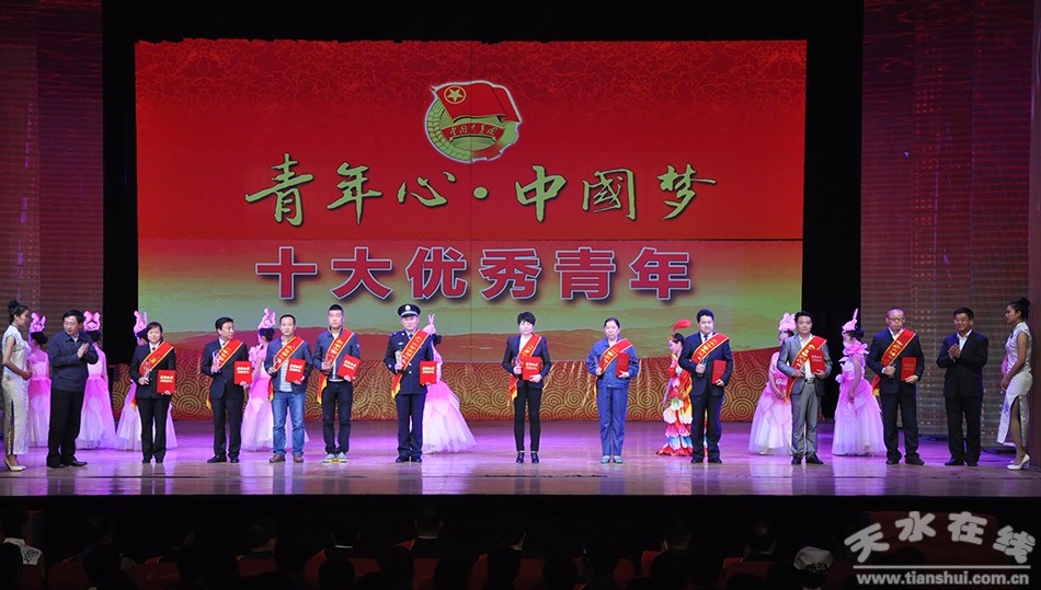 (市委常委、组织部长王光庆、市人大常委会副主任赵建强为天水市“十大优秀青年”颁奖)
