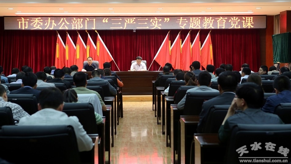 5月20日,天水市委常委、秘书长蒋晓强以讲党课的形式启动市委办公部门、市直机关工委的“三严三实”专题教育。蒋晓强强调,要按照市委部署要求,认真开展“三严三实”专题教育,从严上要求,向实处着力,提振党员干部的精气神,汇聚干事创业的正能量,真正以“三严三实”的过硬作风履好职、尽好责。