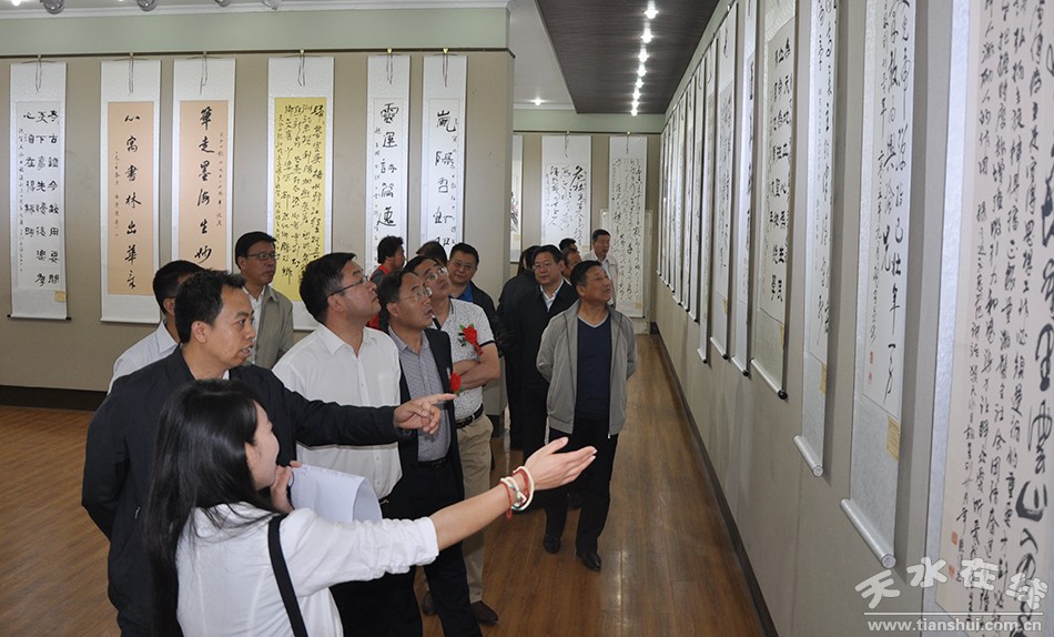 本次展览分为天水日报成长历程展和书画作品展两部分,成长历程展通过文字资料、老照片及部分办报实物,向社会展示天水日报30年发展历程;书画作品展展出新老报人、知名文化人士、我市知名书画家、全国部分报社以及天水日报干部职工作品80余幅,分别以不同形式和内容对天水日报复刊30周年寄予祝贺。