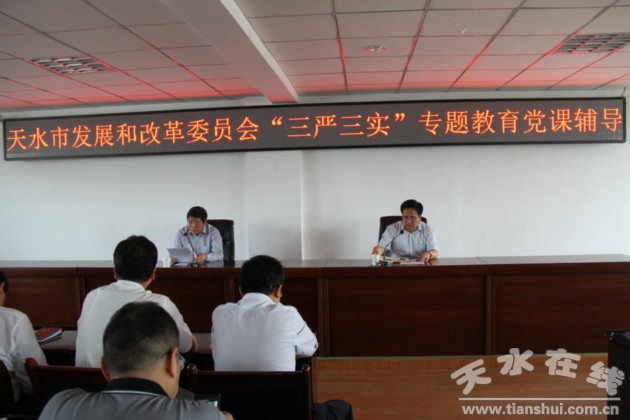 5月29日上午,天水市发展改革委员会举办“三严三实”专题教育党课,市发展改革委党组书记、主任杨文元同志作了题为《突出重点 从严从实 深入开展好“三严三实”专题教育活动》的专题辅导报告,并对全委开展专题教育进行了安排部署。