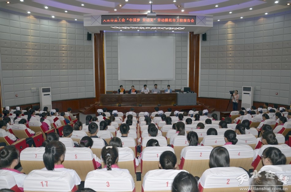 劳动模范是工人阶级和广大劳动人民的杰出代表,是民族的精英、国家的脊梁,是社会的中坚力量和职工的楷模。百名劳模事迹宣讲“中国梦·劳动美”进校园活动由市总工会依据省总工会“五项活动”、“六件实事”的要求精心策划组织,旨在及时传达2015年全国、全省劳动模范和先进工作者表彰大会精神,深刻领会习近平总书记在全国劳动模范和先进工作者表彰大会、省委书记王三运在全省劳动模范和先进工作者表彰大会上的重要讲话精神,教育和引导师生学习“爱岗敬业、争创一流,艰苦奋斗、勇于创新,淡薄名利、甘于贡献”的伟大劳模精神。首场报告会受到了天水市卫生学校师生们的热烈欢迎,报告会以直观的形式,以先进工作者的事迹和高尚的精神,为师生们上了一堂生动的思想教育课。