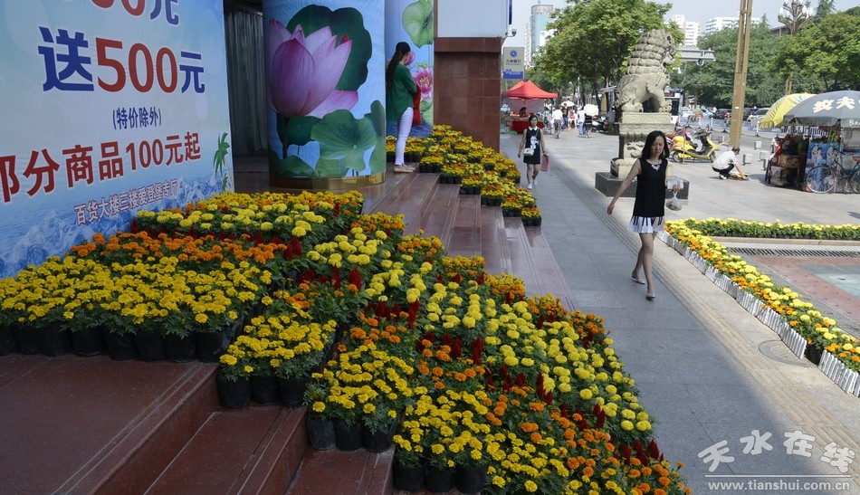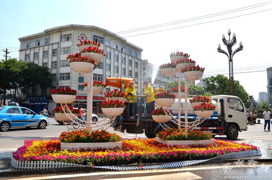 鲜花美化工程预计摆放时令草花27.7万盆,缀花草坪300㎡,“天水欢迎您”立体版面一组,博古架式组合花钵6套,圆形花桶20组,方形花箱32组,组合“凸”字型花箱10组,玻璃钢花钵20组,马鞍插销式花钵3300个,节水组合立体花钵756个,顶盖252个。