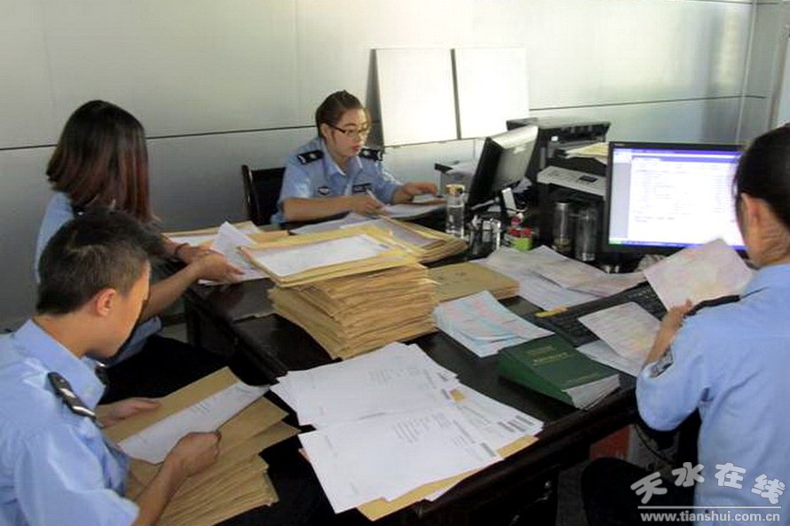 (秦安县公安局交警大队夜间加班录入乡镇受理档案信息)