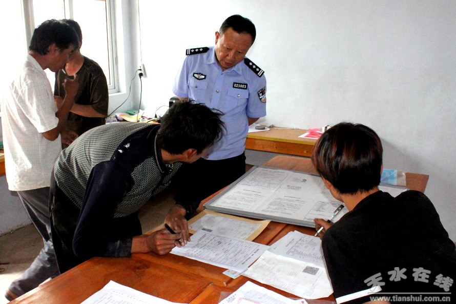 (麦积公安分局交警大队在乡镇交管站集中免费办牌办证) |