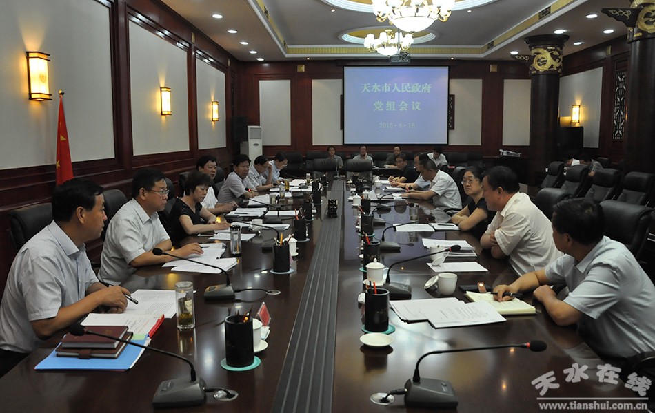 8月18日下午,天水市委副书记、市政府党组书记、市长杨维俊主持召开市政府党组会议,开展“三严三实”专题教育严以律己专题学习研讨。市政府党组副书记张明泰,市政府党组成员温利平、王钧、张建杰、许强、逯克宗出席会议。