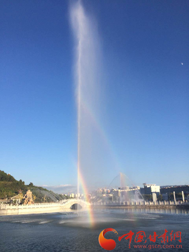 欣赏了美女,一转头就看到轩辕广场上空的彩虹,小陇收获不浅啊!
