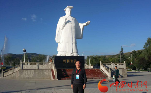 首先,小陇和采访团的记者们来到了轩辕广场,它位于清水县新城区,中山路北端,轩辕大道以南,与红崖观、斗牛河十里风情线等融为一体。它以轩辕雕塑为中心,用旱喷、假山、舞台延伸空间,用绿化植物分割空间,组成休闲、疏散环境,通过多种手法营造出既文化、又休闲,可思古、亦畅想的时空平台,成为市民集会、休闲、娱乐为一体的活动场所。小陇还了解到轩辕塑像是广州美术学院潘绍棠教授设计的。