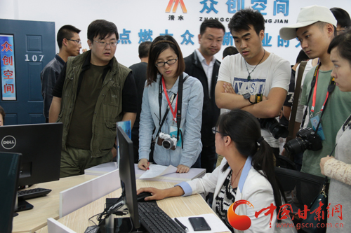 你一言我一语,在众创空间,采访团的记者朋友们一边观看一边向工作人员了解详情,这勤学好问的态度,小陇真的是由衷的敬佩呀。