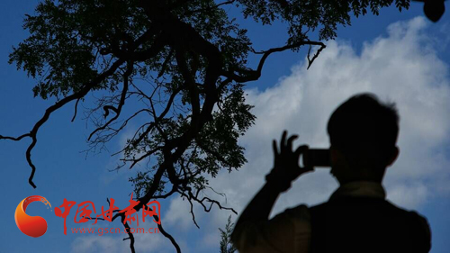这是南郭寺正院里的古柏,树龄约2500年,据说这颗柏树在唐太宗时代就已经枝繁叶茂了。让人惊叹的不仅是它的“高寿”,更在于它自根部一劈为三,分别横卧南、北、西三个方向(其中朝西的一根主干已枯死),更为神奇的是,在古柏的根部不知何年何月长出一棵小树,它错综复杂的根系紧紧缠绕着古柏的根部后;在朝北倾斜的古柏树干下,也奇迹般地长出另一棵大树。真是令人叹为观止!