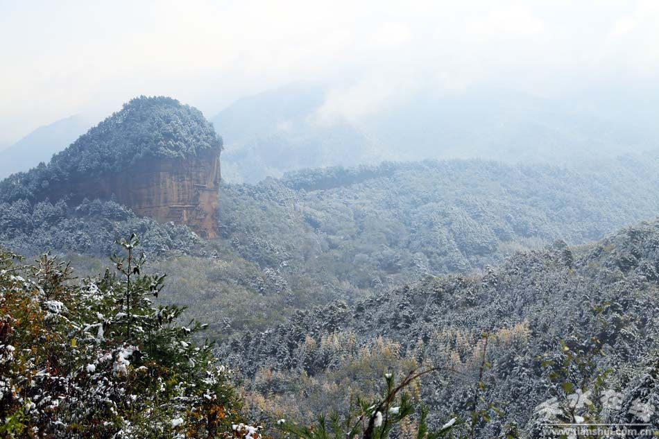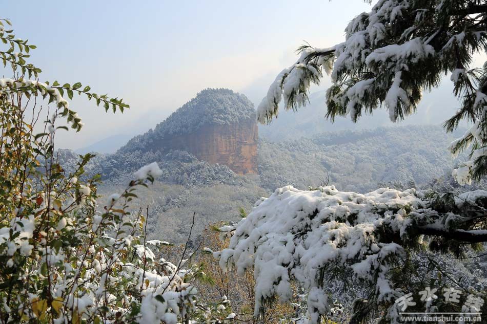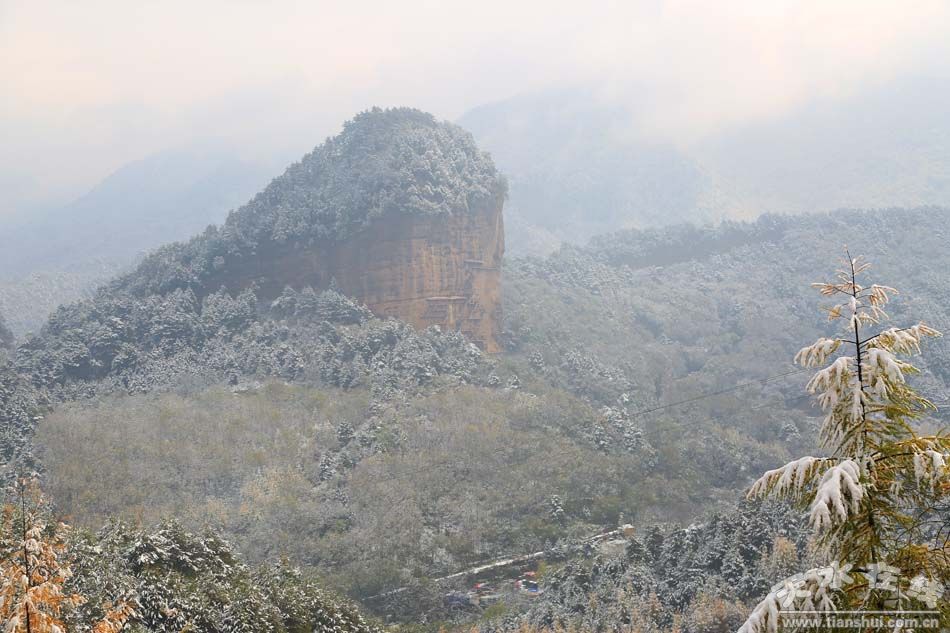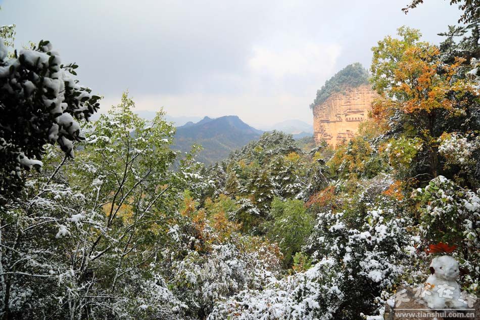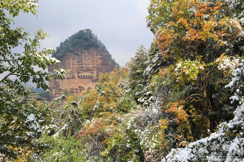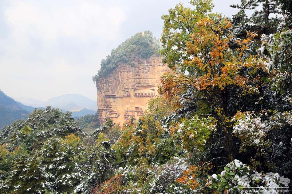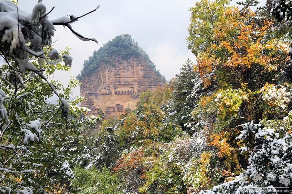 10月31日,深秋的麦积山迎来了一场突如其来的大雪,五颜六色的麦积山,因为这场降雪更加显得美丽妖娆。 |
