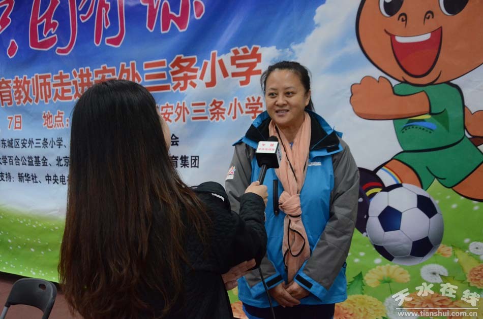 中央电视台记者采访北京市东城区安外三条小学副校长马燕明