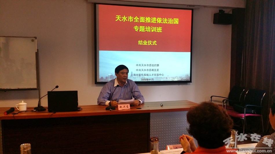 为深入贯彻党的十八届四中、五中全会精神,学习借鉴上海市在全面推进依法治国和司法体制改革试点方面的经验做法,进一步启迪思路、开拓视野,加快我市全面推进依法治市和司法体制改革步伐,11月2日至7日,天水市全面推进依法治国理论专题培训班在上海市宣传系统人才交流中心复旦大学培训基地举办。