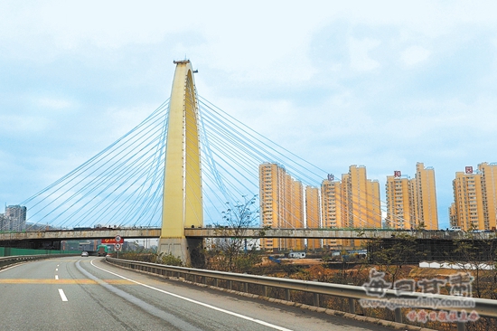 近日,山水一号大桥正在安装斜拉钢索。山水一号大桥横跨藉河、天定高速,南起316国道,北与藉河河堤规划路衔接。大桥于2013年4月开工建设,分南引桥、主桥和北引桥三部分,该桥建设融城市景观和交通为一体,是连接藉河南北两个片区的外环快速通道枢纽工程,建成后将极大方便周围群众的出行,对提升城市形象、改善人居环境有重要意义。