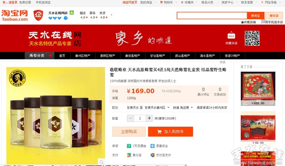 据介绍,近年来,天水农业产业结构调整取得了历史性突破,特别是以林果、蔬菜、畜牧为主的特色优势农业产业发展进步很快,有力地带动了农业增效和农民增收,天水花椒、樱桃、苹果等农林特产成为农民致富的香饽饽。据了解,获得“陇原农宝·天水十宝”荣誉称号的特产有:伊真香纯马铃薯淀粉粉条;“秦州”大樱桃;西联蜂业蜂蜜、新鲜王浆、蜂花粉;雪原果品;“大漠行”牌麻编制品;花椒芽菜;元嘴头花椒;禾丰核桃;兴馨花椒;融兴黑木耳。这些农产品在保持原生态的同时,注重培养原生态特产市场,鼓起了农民的钱袋子。