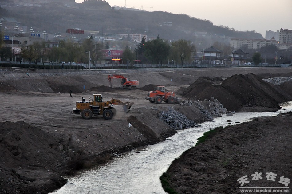 (藉河生态环境治理一期续建工程施工现场)