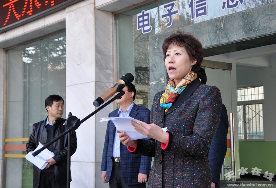 今天,我们在这里举行“天水市电子商务学院”揭牌仪式。这是我市地方与院校合作、共同推进电子商务发展的一件大喜事,也是实施电商精准扶贫、加快全面小康社会建设的现实举措。在此,我代表市委、市政府对“天水市电子商务学院”的成立表示热烈的祝贺,对天水师范学院的大力支持表示衷心的感谢!