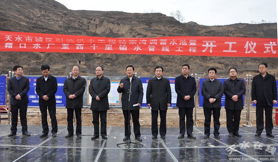12月4日,天水城区引洮供水工程杨家湾调蓄池暨藉口水厂至西十里输水管道工程开工建设,这也是市委、市政府为解决城区供水问题而实施的又一重大项目。