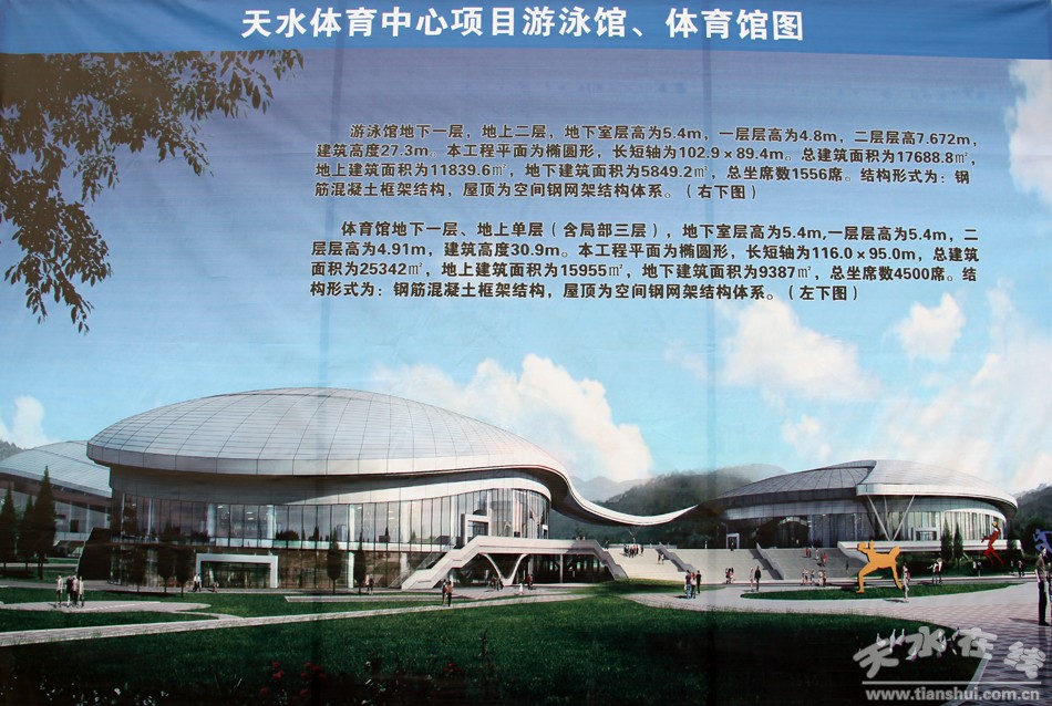 市体育中心项目位于天水商贸城东南面,总占地面积436亩,总投资6.43亿元,总建筑面积10.5万平方米,将建2万座(位)体育场、5000座(位)体育馆、1500座(位)游泳馆、500名学生规模的体育运动学校和全民健身中心,项目计划于2018年建成并投入使用;高铁南站站前广场项目主要包括综合交通枢纽及站前广场、市政道路配套与地下综合管廊、旅游集散中心、旅游商业服务中心、中轴线公园等,工程估算总投资9.1亿元,总占地面积824亩,总建筑面积12万平方米;赵崖安置区(高铁佳苑)项目是全市综合交通和棚户区改造的重点工程,总投资19.42亿元,总占地438亩,建设用地308亩,分三期建设,拟建设31幢3620套群众安置住房。