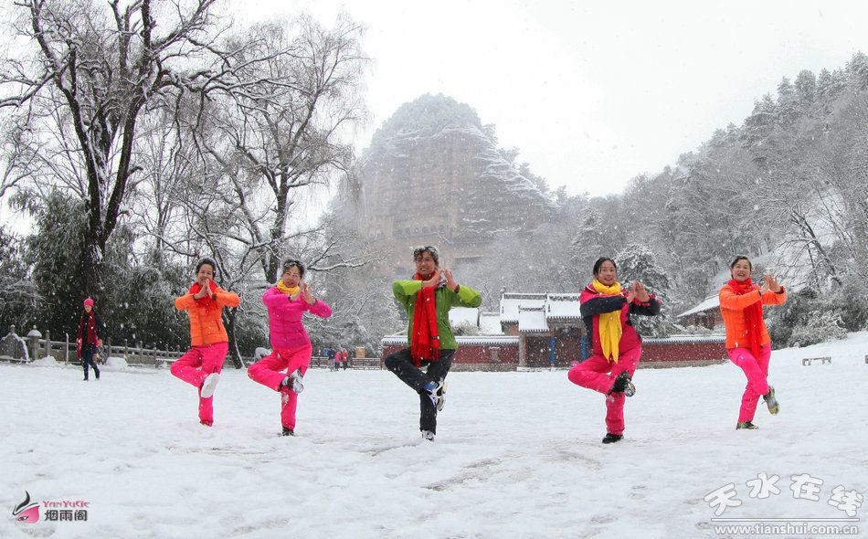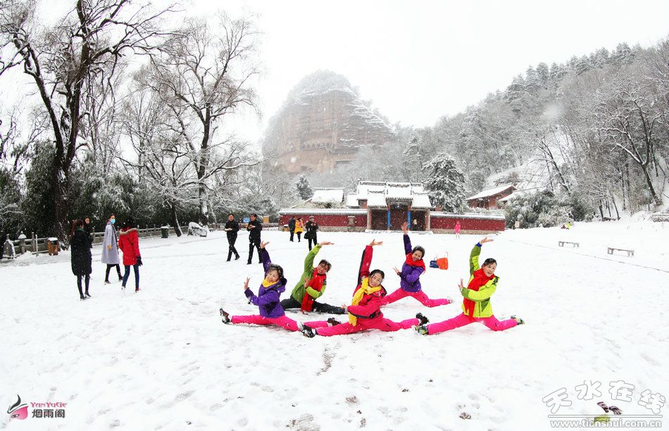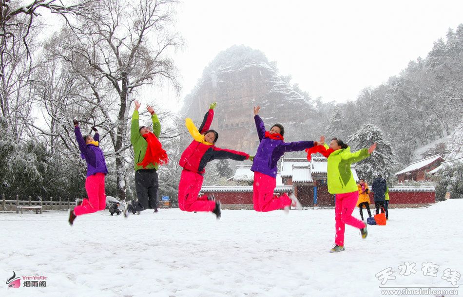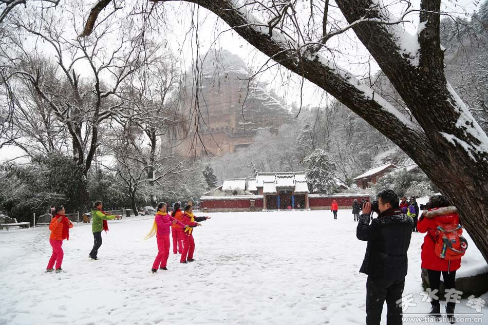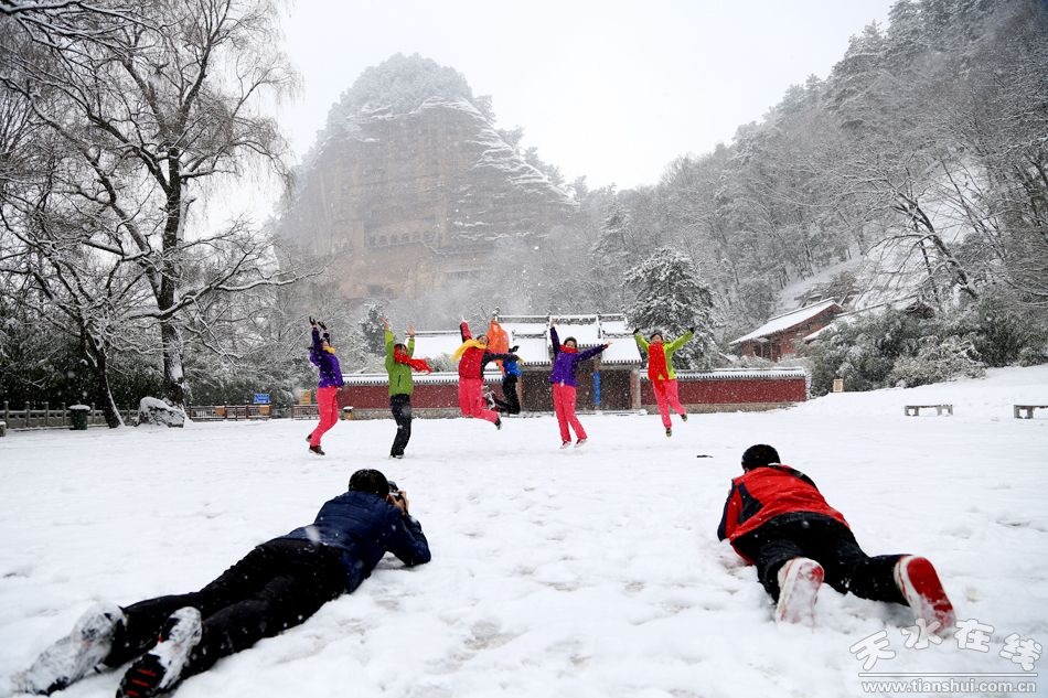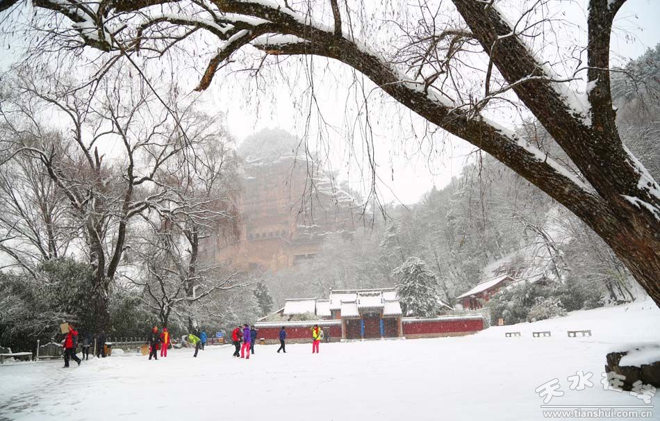 冬日至,北风吹,雪照麦积似天堂。如是雪花烂漫时,童心依旧俏。