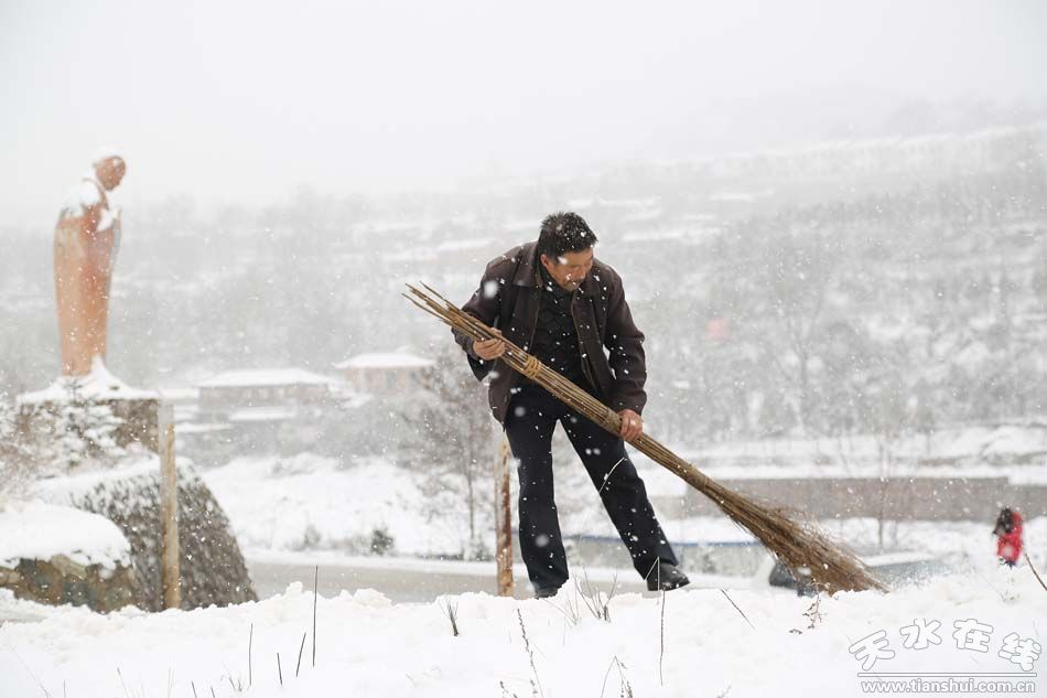 雪花朵儿啊,这些白色的精灵,越过了三季色彩,终于落到了麦积山。天穹低沉,亚麻色的云连成一片,好像浑沌未开,眼前的景像却是一片洁白明亮。在天地的苍茫无涯间,远处层层叠叠的山峦是看不透彻的,它们披着莹白的绸缎,柔柔的躺在天水大地,织造出那无边的帷幔,遮蔽了远望的视线,隐隐消失在雪雾里。