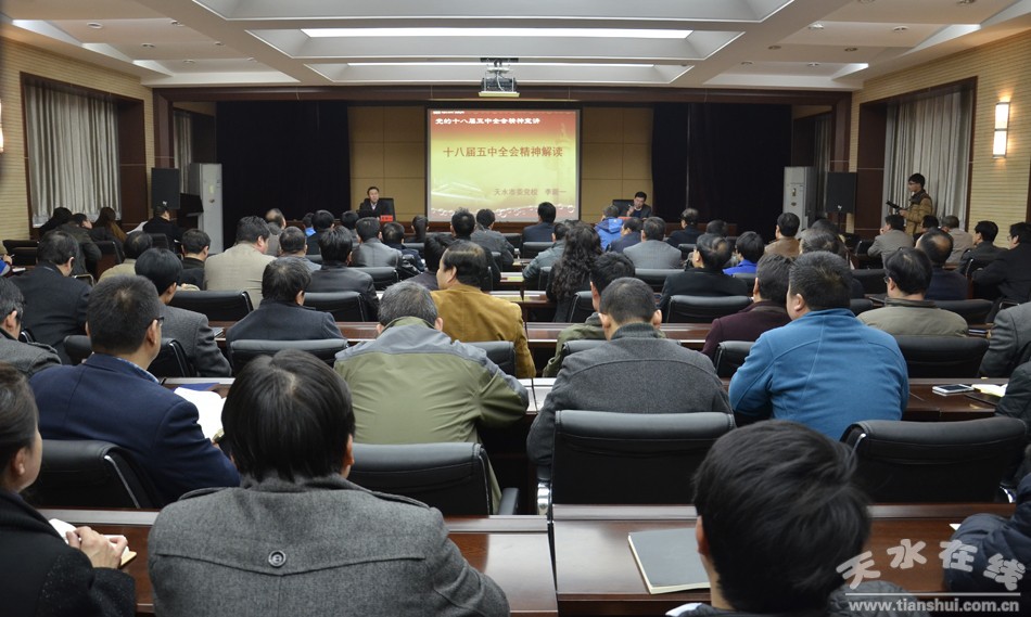 12月9日,天水市委宣讲团在天水师范学院举行党的十八届五中全会精神宣讲报告会。市委第八宣讲组组长、市委党校常务副校长李新一为全校处科级干部作了专题辅导报告。