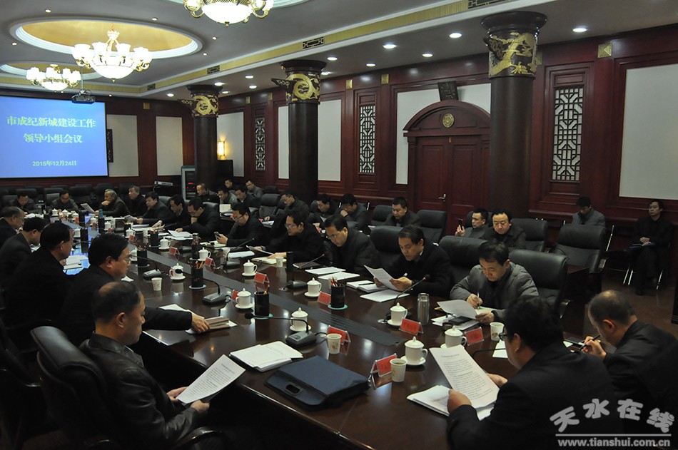 12月24日, 天水市副市长王钧主持召开成纪新城建设工作领导小组会议。会议回顾总结了2015年成纪新城建设工作,研究解决成纪新城建设有关事项,并对2016年成纪新城建设工作作出安排部署。