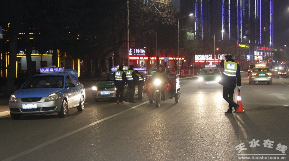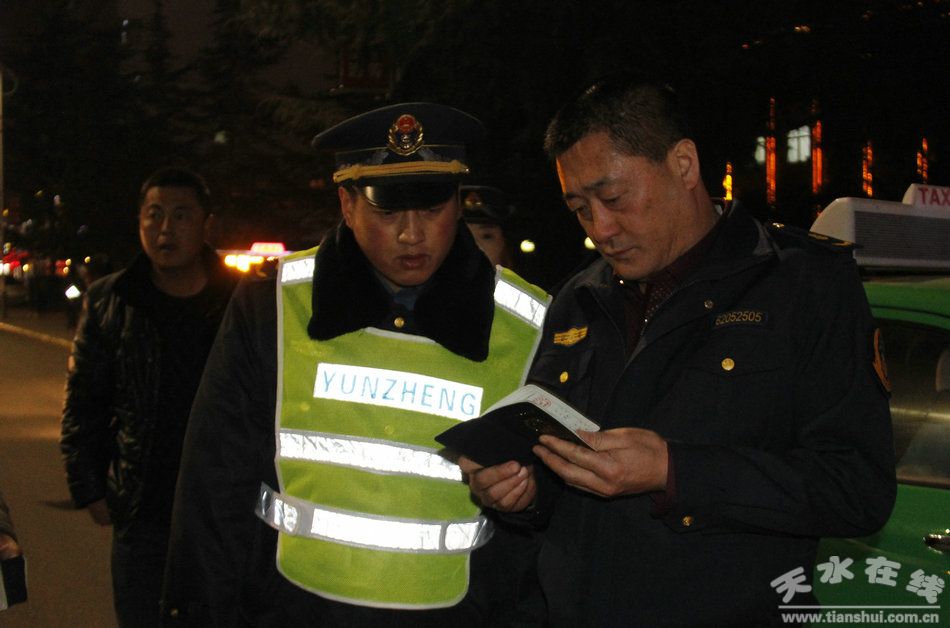 12月30日晚,由李晓涛副局长带队,分别在天水郡、皇城路、藉河北路、七里墩、马跑泉公园等路段,对出租车运营情况进行了检查。主要检查了车辆的道路运输证、从业资格证是否随车携带、车容车貌是否整洁、座套是否干净、消防设备是否有效等。