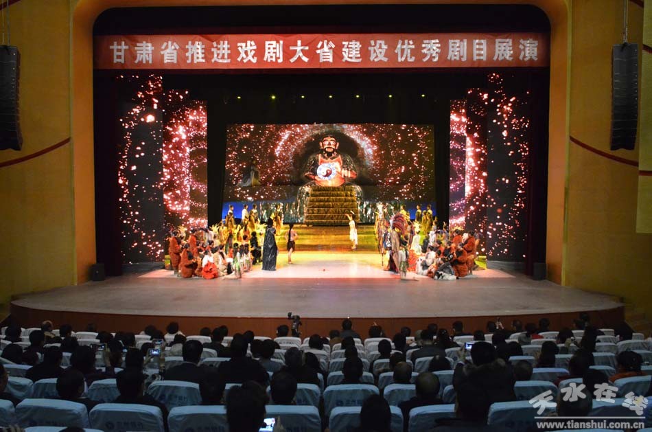 天水在线兰州报道 1月4日晚8时,甘肃省推进戏剧大省建设优秀剧目《一画开天》在兰州黄河剧院进行了第二场展演,精彩不断,掌声如潮。省委常委、统战部长王玺玉,省政协副主席张津梁、张景辉,天水市委常委,宣传部部长王正茂,副市长张建杰等观看了演出。