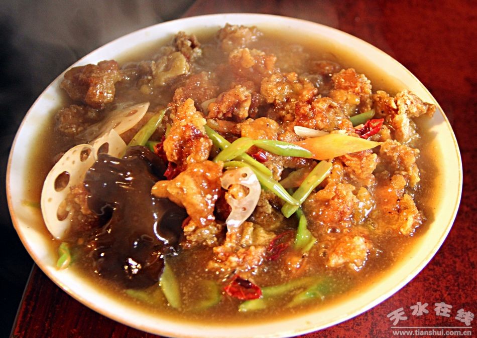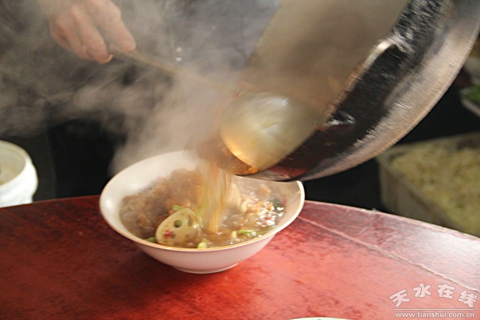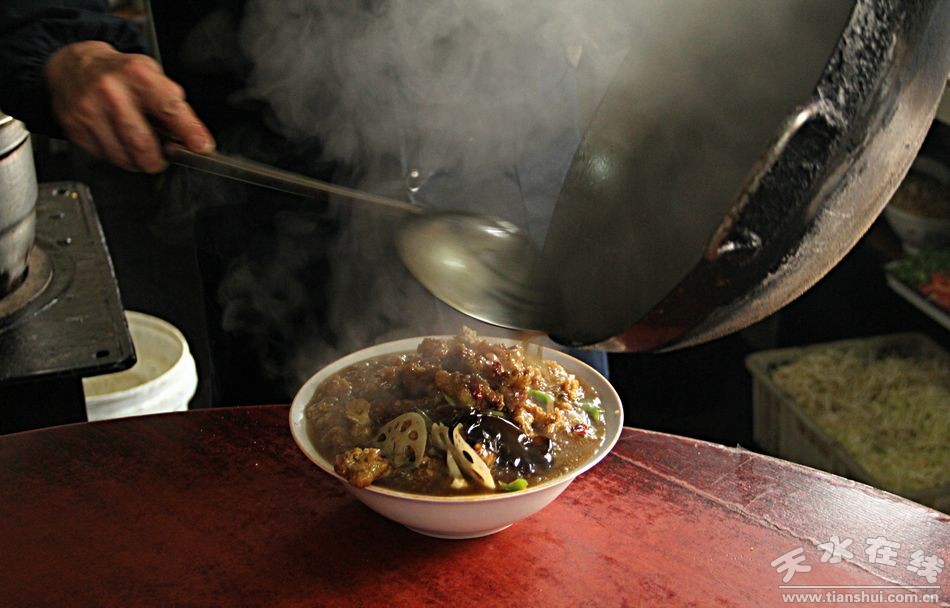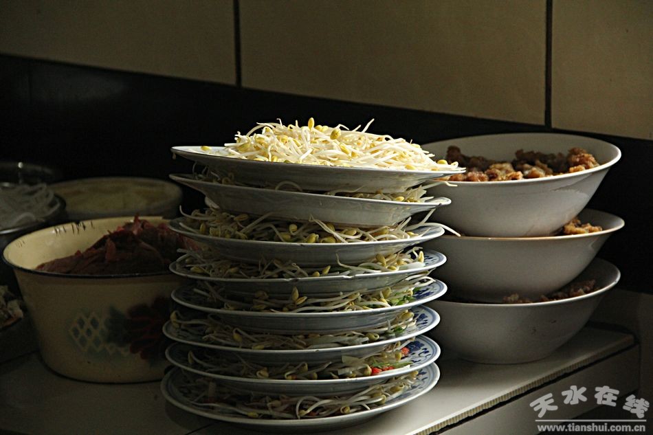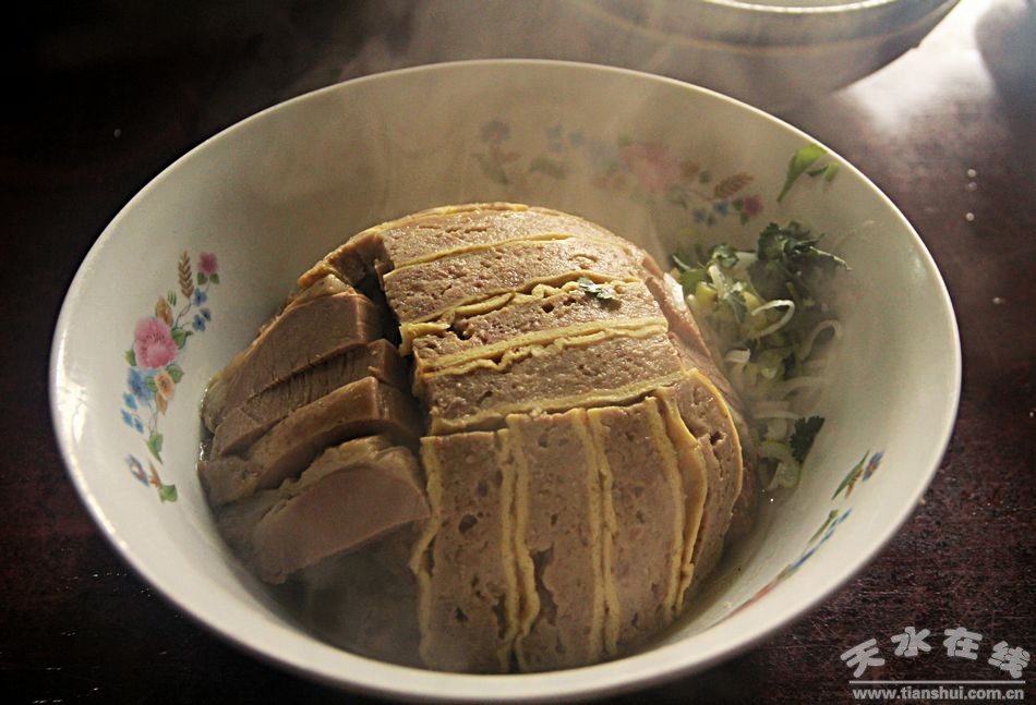 一位老食客对我们讲:就天水的现状来说,能将传统的天水“老三片”地道的呈现在餐桌上的餐馆已经不多了……。