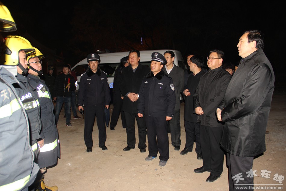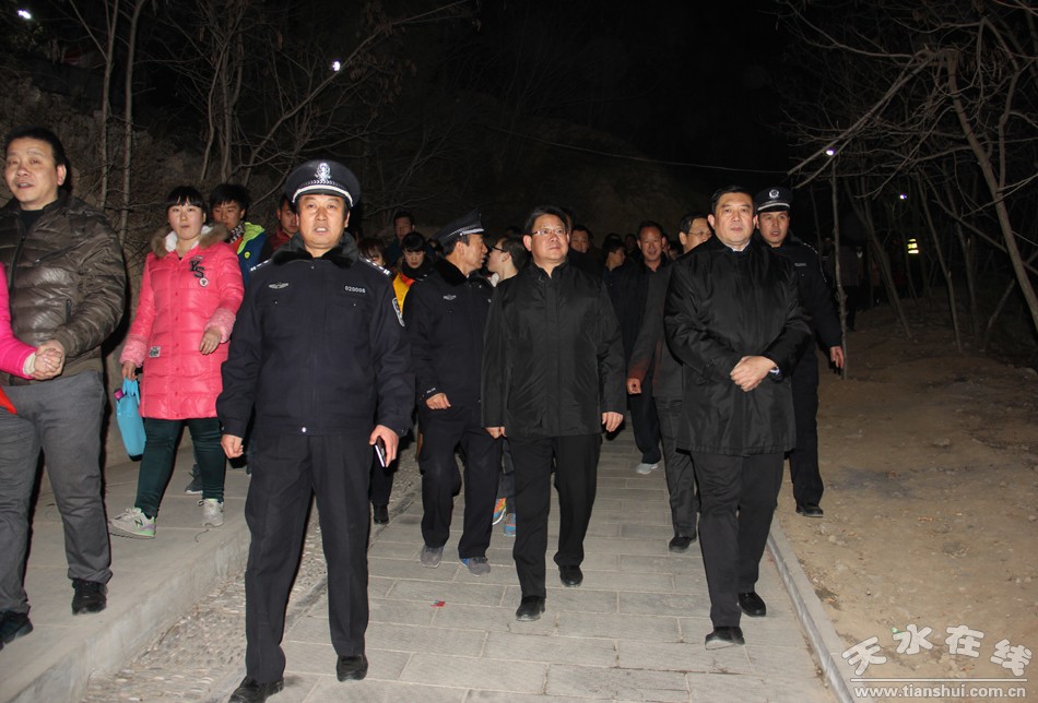 2月15日晚,天水市委常委、政法委书记赵卫东,副市长张建杰带领相关部门负责人检查了玉泉观庙会安保工作落实情况,慰问了执勤的民警、消防官兵和工作人员。