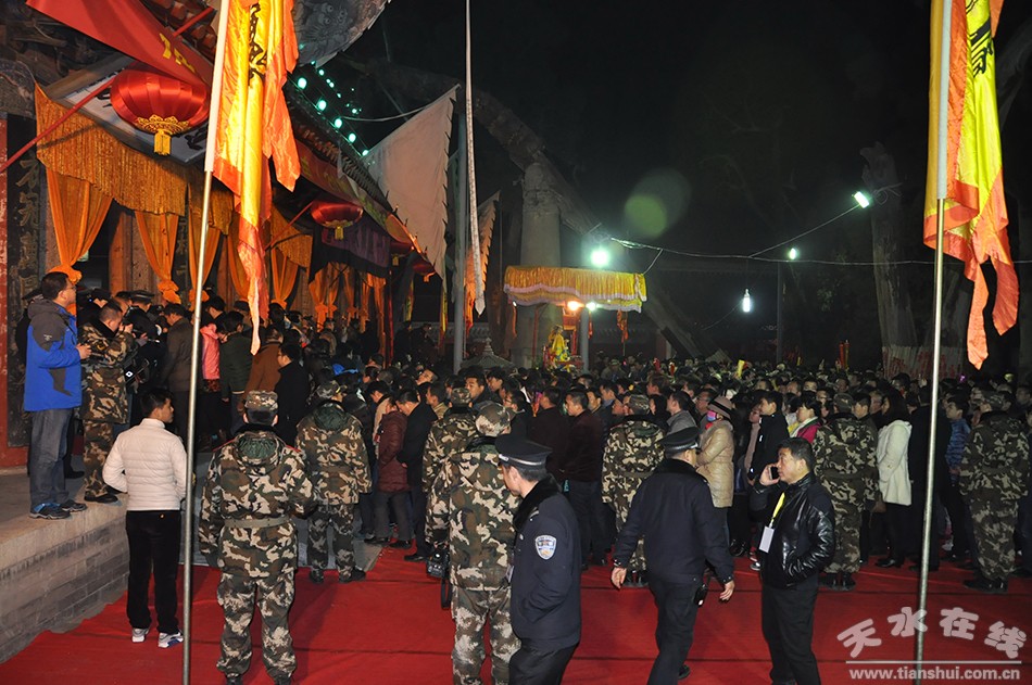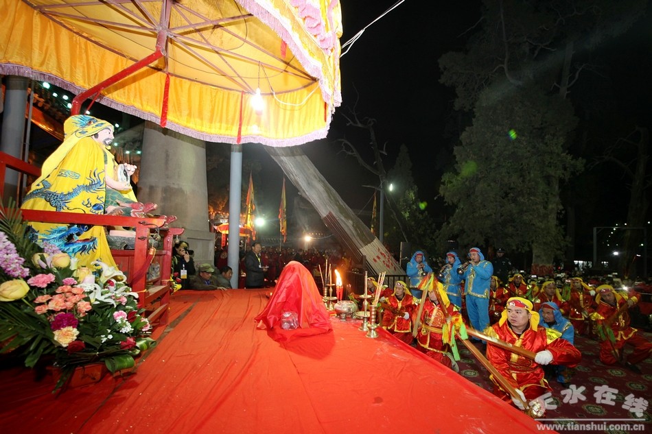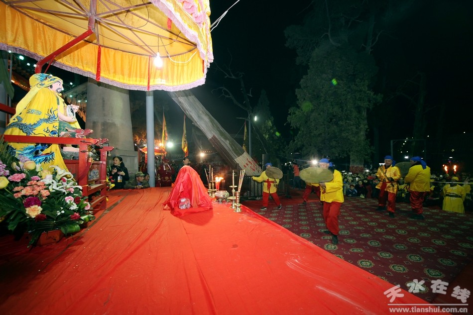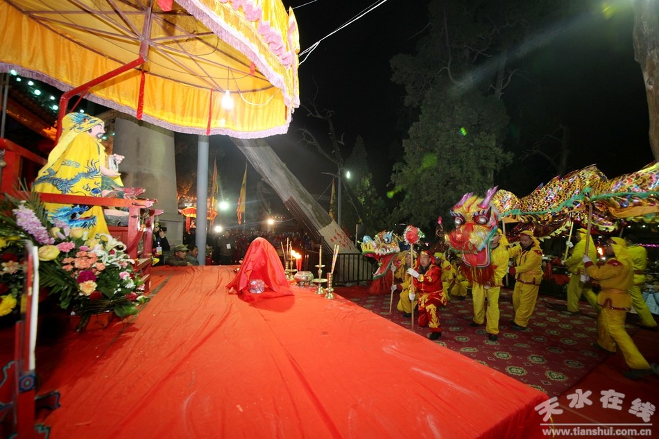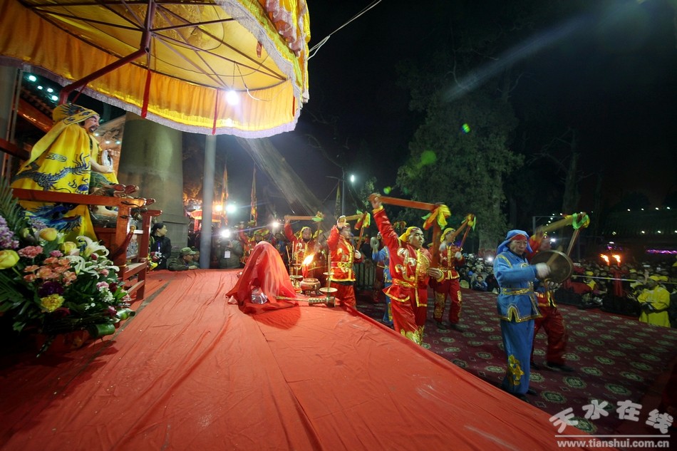 ▲正式祭祀典礼仪式开始前(23:25—23:45)举行舞龙、舞狮、开山攒神、夹板、 鞭杆舞和唢呐表演。