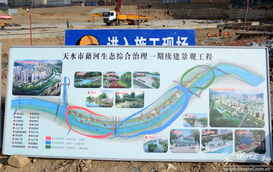 (藉河生态环境综合治理一期续建工程施工现场)