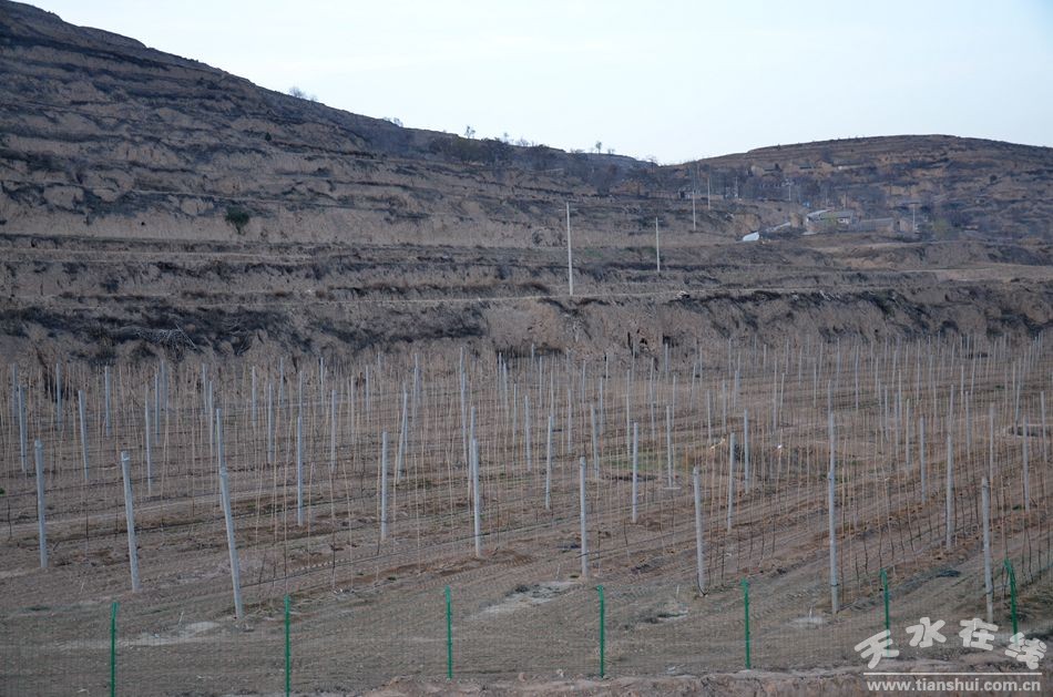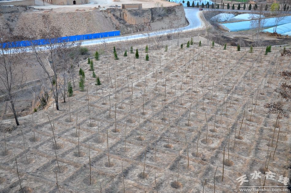 (洛门镇牟坪现代农业苹果矮化密植示范园行道树栽植情况)