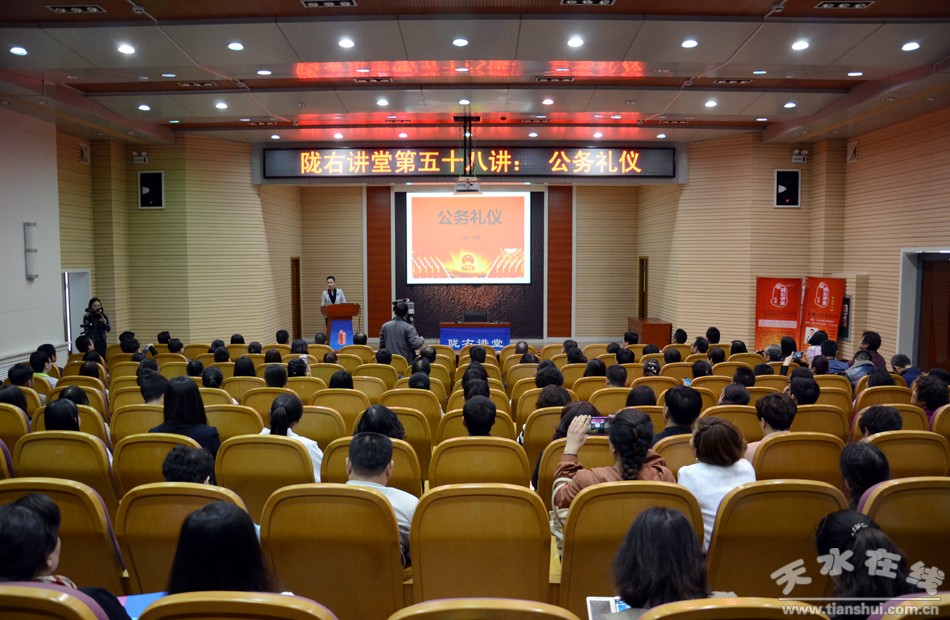 4月26日下午,天水市审计局选派5名审计干部参加“陇右讲堂”第五十八讲"公务礼仪"讲座,旨在更好地维护政务机关的良好形象,提高国家行政工作效率,规范公务活动行为,提升公务员政务礼仪和人际交往技巧。