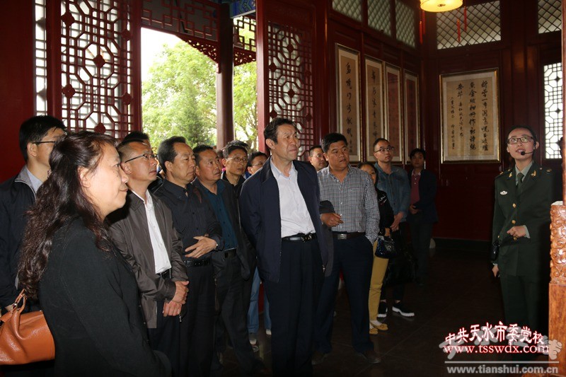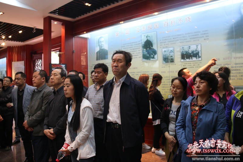 全体党员干部参观了纪念馆,认真观看了纪录邓宝珊将军生平事迹的影象、书信等珍贵资料。在讲解员的讲述下对邓宝珊将军伊犁起义、讨袁战争、护法运动、北伐战争、八年抗战和主政甘肃的光辉一生进行了深入了解。在邓宝珊将军纪念亭前,市委党校全体党员干部重温了入党誓词,进行了现场党性教育。