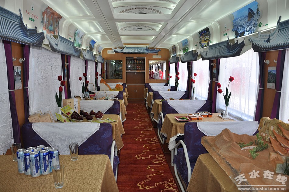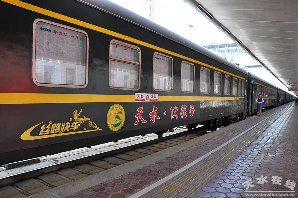 天水至敦煌“天水·伏羲号”的 Y671次列车是我市真正意义上的首趟始发列车。使用1组25K型车体,列车编组14节,其中软卧1节、硬卧6节、硬座4节、餐车1节、行李车1节、发电车1节;全程软卧下铺票价497.5元、硬卧下铺325.5元、硬座177.5元。天水火车站14时43分始发,途经陇西、兰州、武威、金昌、张掖、嘉峪关、瓜州站,第二日8时56分终到敦煌站,单程运行里程1481km,用时18小时13分钟,开1天停2天运行。