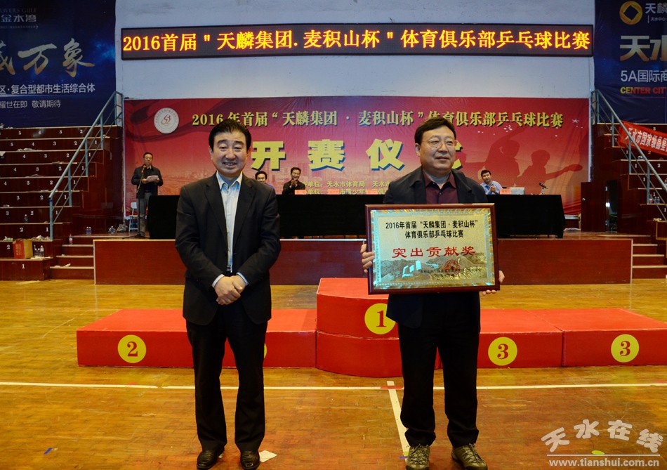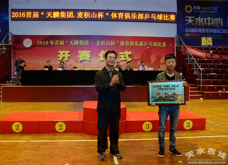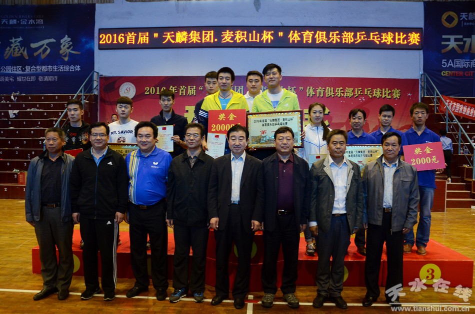 5月24日下午,2016年首届“天麟集团·麦积山杯”体育俱乐部乒乓球比赛在我市南山体育训练馆落幕。副市长霍卫平出席颁奖仪式并观看了比赛。