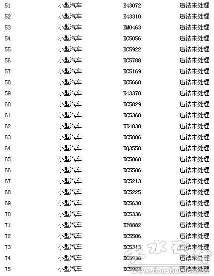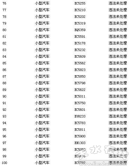 四、天水辖区交通违法未处理小型车(随机抽选100台)