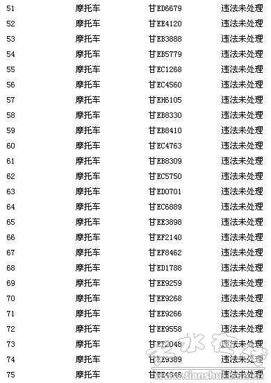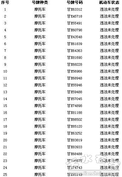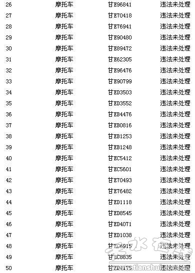 二、天水辖区交通违法未处理摩托车(随机抽选100台)