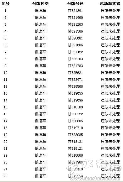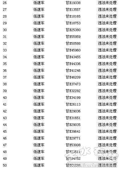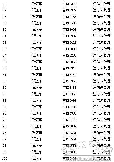 一、天水辖区交通违法未处理低速车(随机抽选100台)