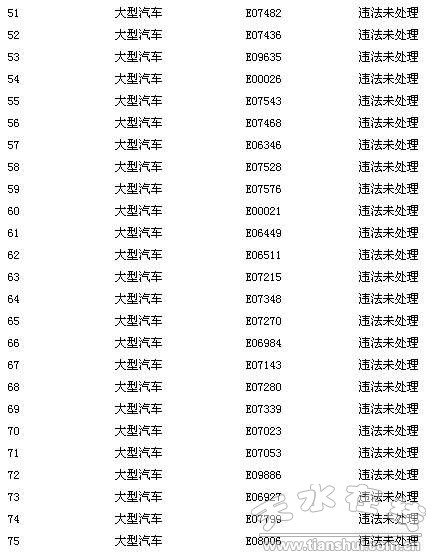 三、天水辖区交通违法未处理大型车(随机抽选100台)