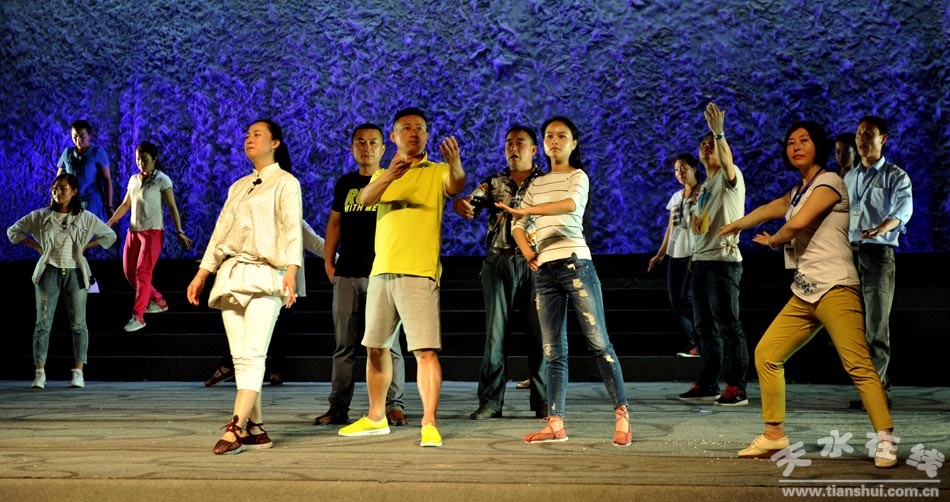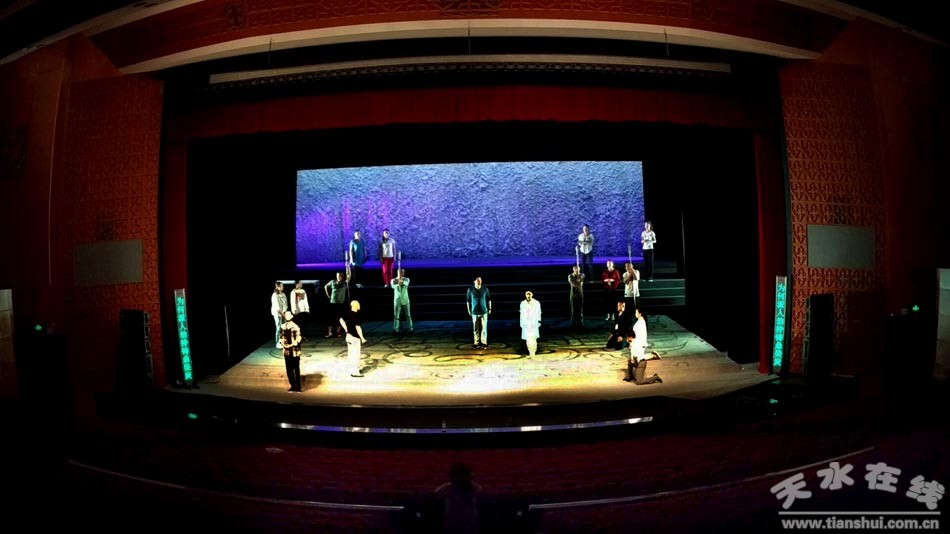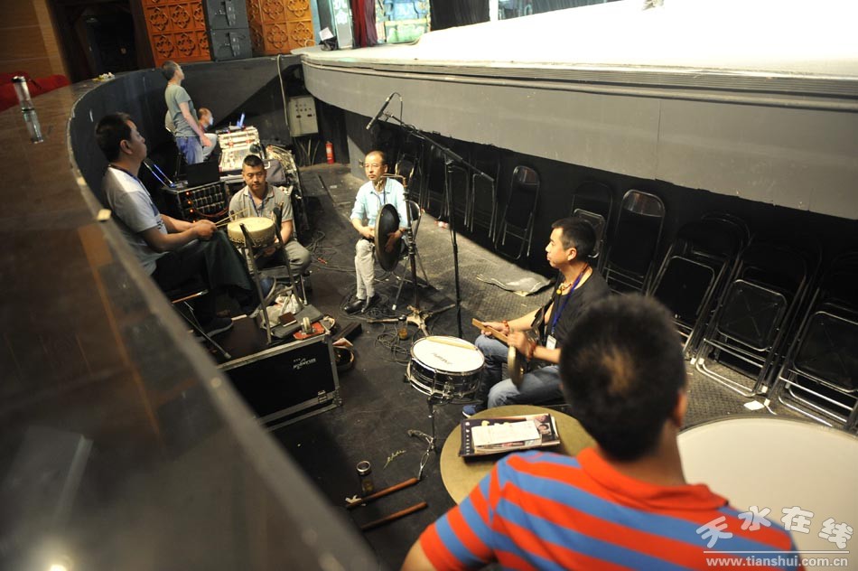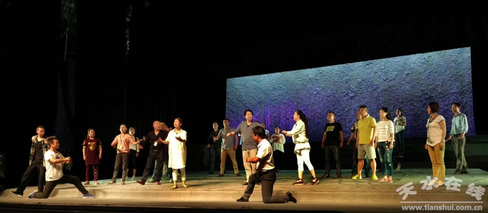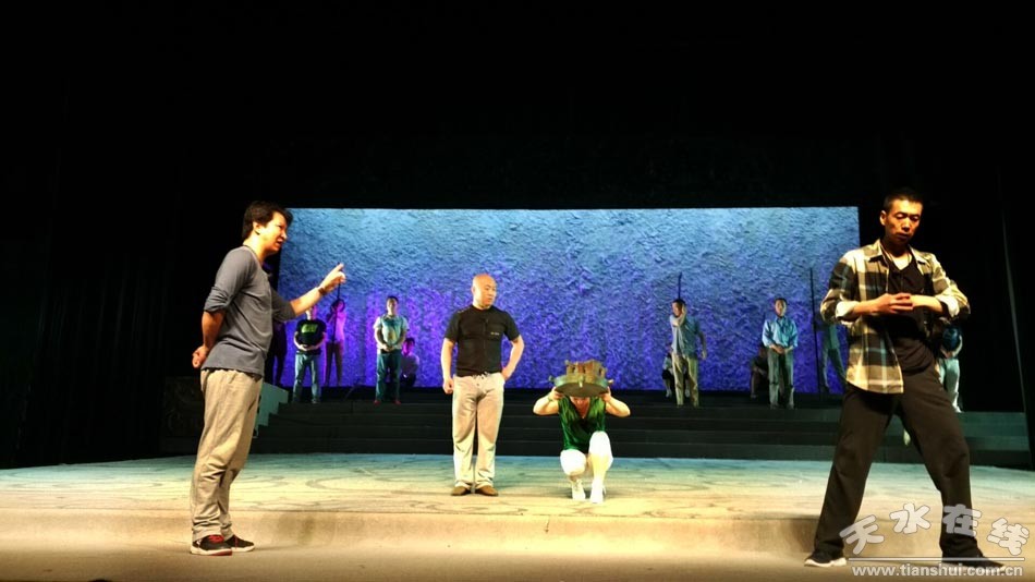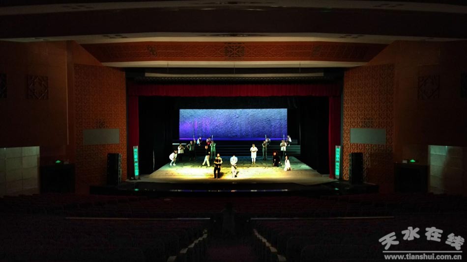 天水在线6月1日上海报道 天水市西秦腔研究院编排的大型历史秦剧《大秦文公》剧组昨日抵沪,今晚将在上海逸夫大剧院举行首场展演,演出门票已经全部销售一空。图为剧组正在抓紧熟悉舞台。