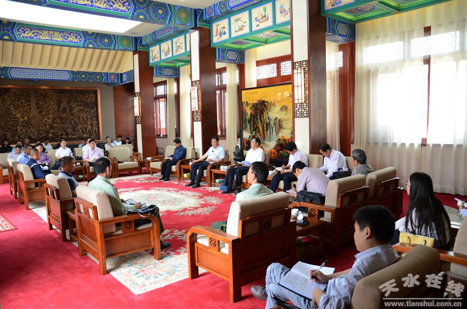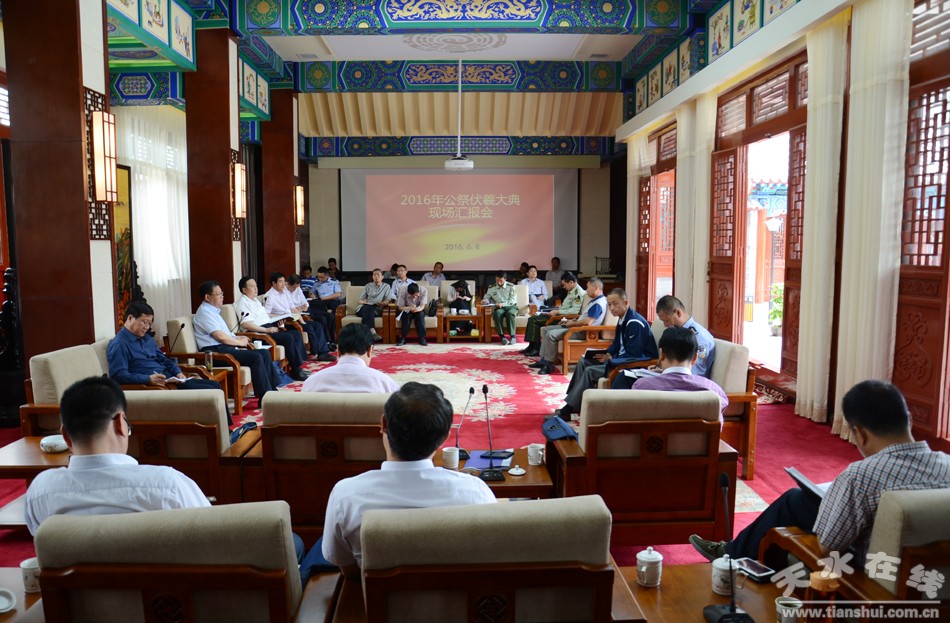 (6月8日,天水市副市长张建杰在伏羲庙会议室主持召开2016年公祭伏羲大典协调会。) |