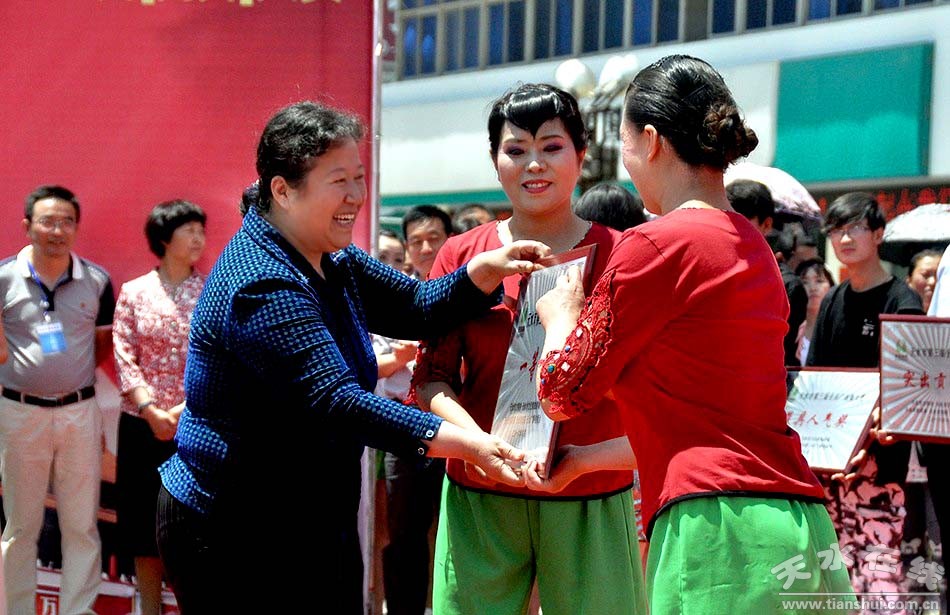 (天水市妇联主席王晓琴为三等奖颁奖)