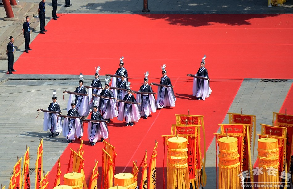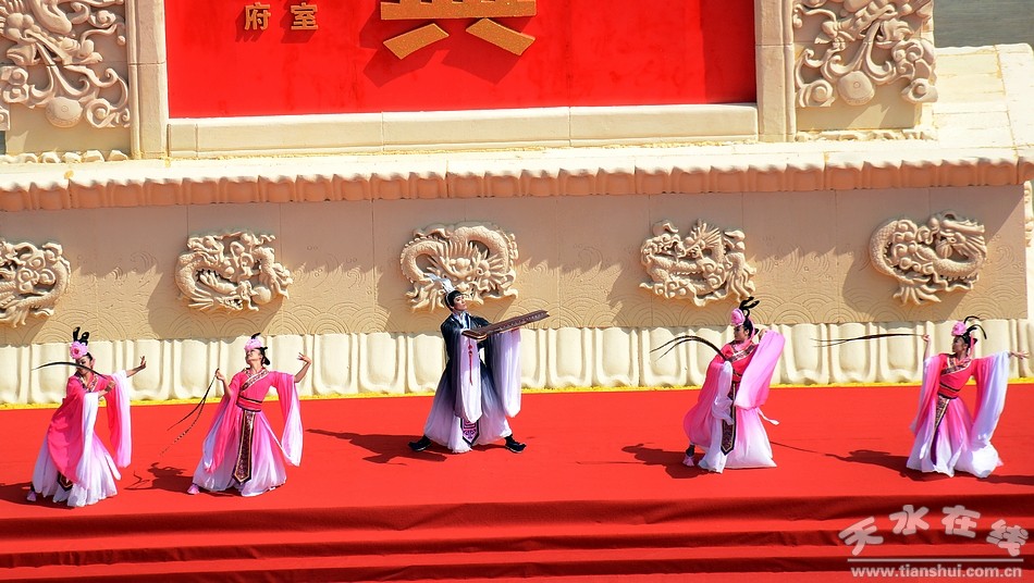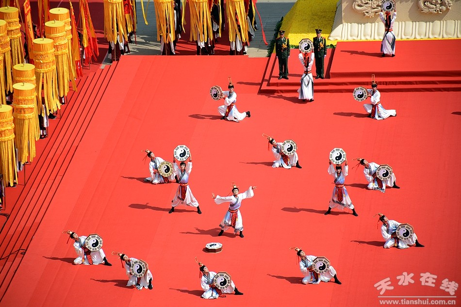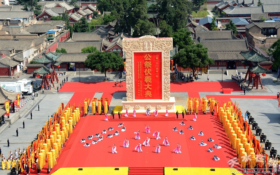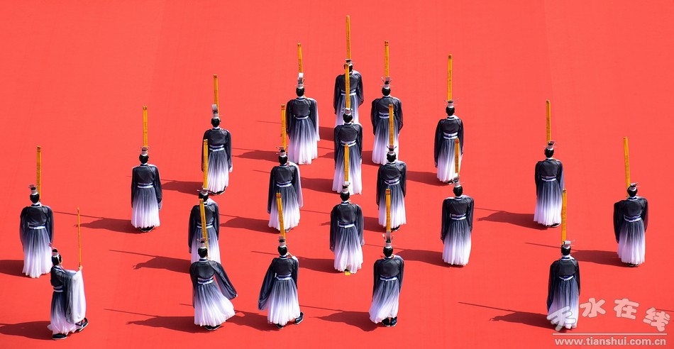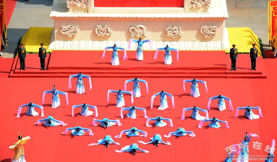 6月22日,2016(丙申)年公祭中华人文始祖伏羲大典在天水伏羲庙隆重举行。图为大典仪程第五项之乐舞告祭 |