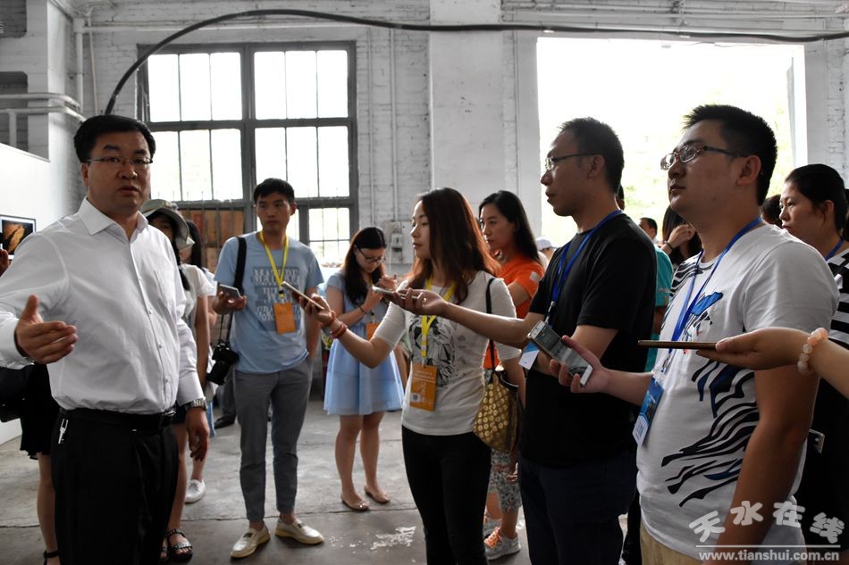 6月22日,在2016(丙申)年公祭中华人文始祖伏羲大典落下帷幕之际,甘肃省文联副主席王登渤,天水市委常委、宣传部长王正茂携同来自全国百家网络媒体天水行采风团一同观看了“影像丝绸之路——天水摄影双年展”,并就举办摄影双年展的现实意义和历史意义等问题现场作了解答。