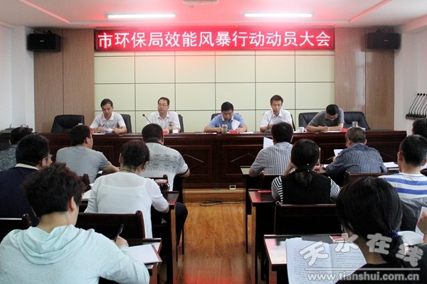 近日,天水市环保局召开效能风暴行动动员大会。局机关各科室、局属各单位全体干部职工共60余人参加了会议。