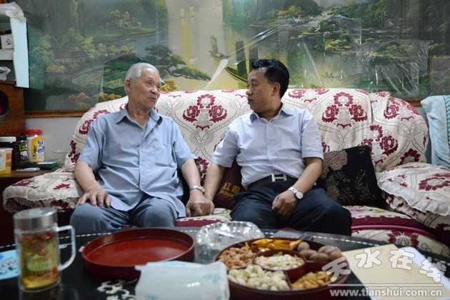 在中国共产党成立95周年纪念日到来之际,6月30日,天水市人防办党组书记、主任马小龙前往退休老党员蒋洪昌家中进行慰问,向他送去了党的关怀和温暖,并致以节日的慰问和美好的祝福。