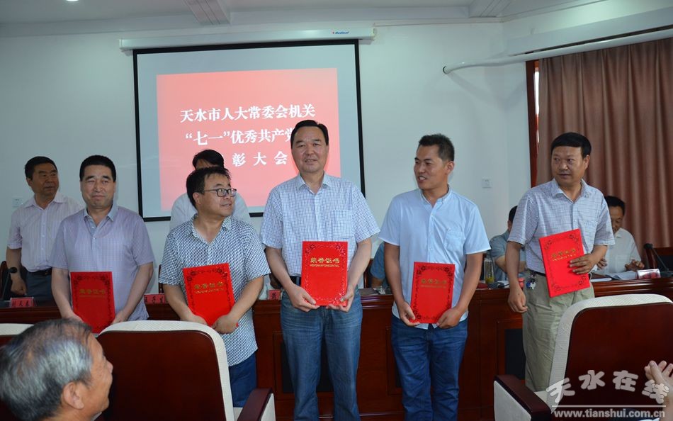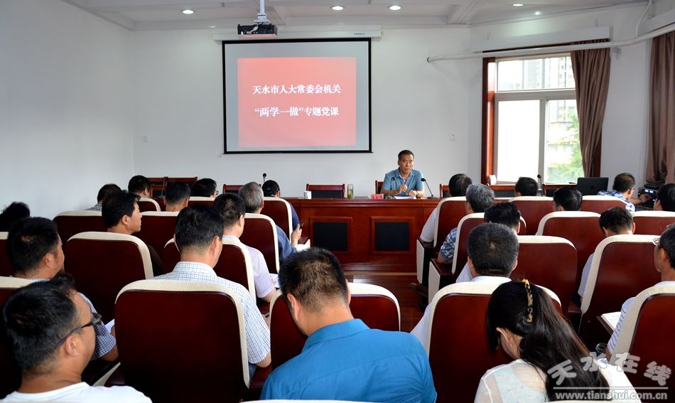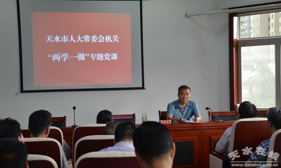 7月1日下午,天水市人大常委会机关开展“党员固定活动日”活动,市人大常委会党组书记、主任柴金祥为机关党员干部讲了“两学一做”专题党课。柴金祥强调,市人大常委会机关全体党员干部职工要以扎扎实实的作风搞好“两学一做”学习教育,自觉按照党员标准规范言行,发挥先锋模范作用,为加强我市民主法治建设、助推经济社会发展作出更大贡献。